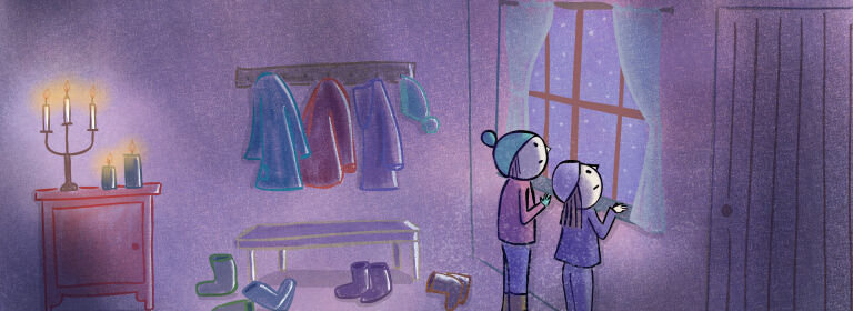 Bain de neige en Norvège de Pascale Hecquet (4') : Thaïs et Thomas ont passé Noël dans une drôle de maison en bois. Il fallait casser la glace sur le lac pour avoir de l’eau et s’éclairer à la bougie dès qu’il faisait noir. Mais que ne ferait-on pas pour profiter d’un bain de neige en Norvège ?