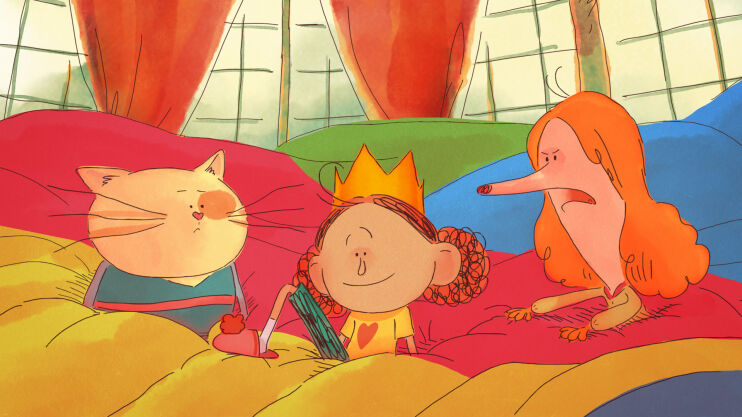 La Grande rêvasion de Rémi Durin (France, Belgique, 2025, 26') : Alors que le spectacle de l’école va commencer et que les applaudissements du public résonnent, Andréa n’ose pas rejoindre ses camarades sur scène. Pour se cacher, elle file s’enrouler dans une cape de fortune dont le tissu semble interminable. Elle en ressort finalement dans un magnifique palais, entouré d’un nuage aussi moelleux qu’impénétrable.